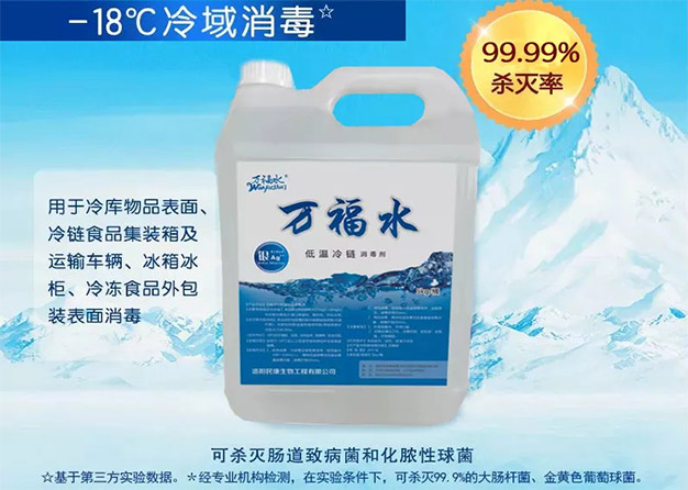 冷鏈食品檢測新冠病毒陽性屢見報端,讓人民意識到在冷鏈食品生產(chǎn)運輸中整個防控體系中,消毒殺菌環(huán)節(jié)是必不可少的?!叭f福水低溫冷鏈消毒劑”完全勝任食品生產(chǎn)、包裝、貯運各個環(huán)節(jié)的消毒工作。冷鏈食品行業(yè)防控必要...